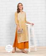 Anmi Printed Women Straight Kurta (Yellow)