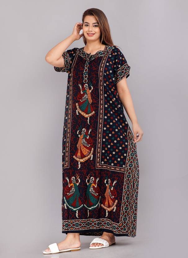 We offers this delicately rich long Printed nighty dress for a sweat free comfort all night long. This a perfect pick for women who are fond of stylish nightwear. This short sleeved nighty is a must have for your night wear needs. Made with 100% soft Cotton to keep you cool all throughout.