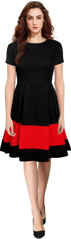 Nidhi Collection Women High Low Red, Black Knee Length Dress