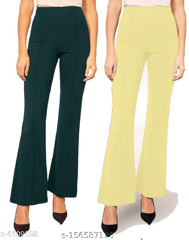 Pack of 2 Women Regular Fit Green Cotton Blend Trousers