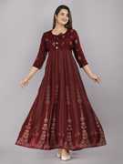 Floral Print Viscose Rayon Stitched Anarkali Gown (Pink)