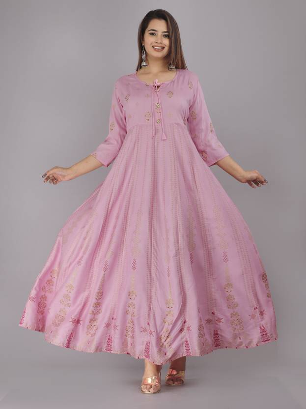 Floral Print Viscose Rayon Stitched Anarkali Gown (Pink)