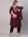 Gosriki Women Viscose Rayon Kurta Pant Dupatta Set