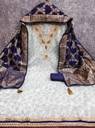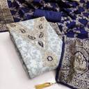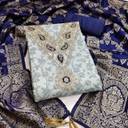Top Fabric:-Chanderi Print With Codding Work, Bottom Fabric:- Santoon, Dupatta Fabric:-Banarasi Silk, Top Color:- Light Blue, Bottom Color:- Dark Blue, Dupatta Color:- Dark Blue, Top Length:- 2 m, Bottom Length:- 2 m, Dupatta Length:- 2-2.25 m.