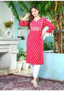 Add a touch of Rajasthani elegance to your wardrobe with this Leheriya kurta. Designed in a straight fit with diagonal Leheriya stripes and a beautifully embroidered yoke, this kurta blends traditional charm with modern style. Crafted from soft, breathable fabric, it ensures all-day comfort, making it ideal for daily wear, festive occasions, or office wear. The round neck, 3/4th sleeves, and side slits enhance both style and ease of movement.