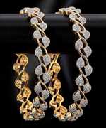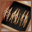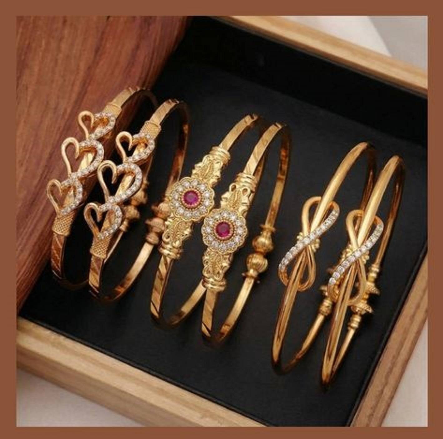 Elegant gold-plated designer bangle set featuring a mix of modern and traditional patterns with sparkling stone accents that add a rich and graceful appeal. Crafted with a smooth finish for comfortable wear, these bangles are lightweight, skin-friendly, and perfect for daily use, festive occasions, weddings, parties, and gifting. A versatile accessory that beautifully complements ethnic as well as fusion outfits, making it an ideal addition to any jewellery collection.