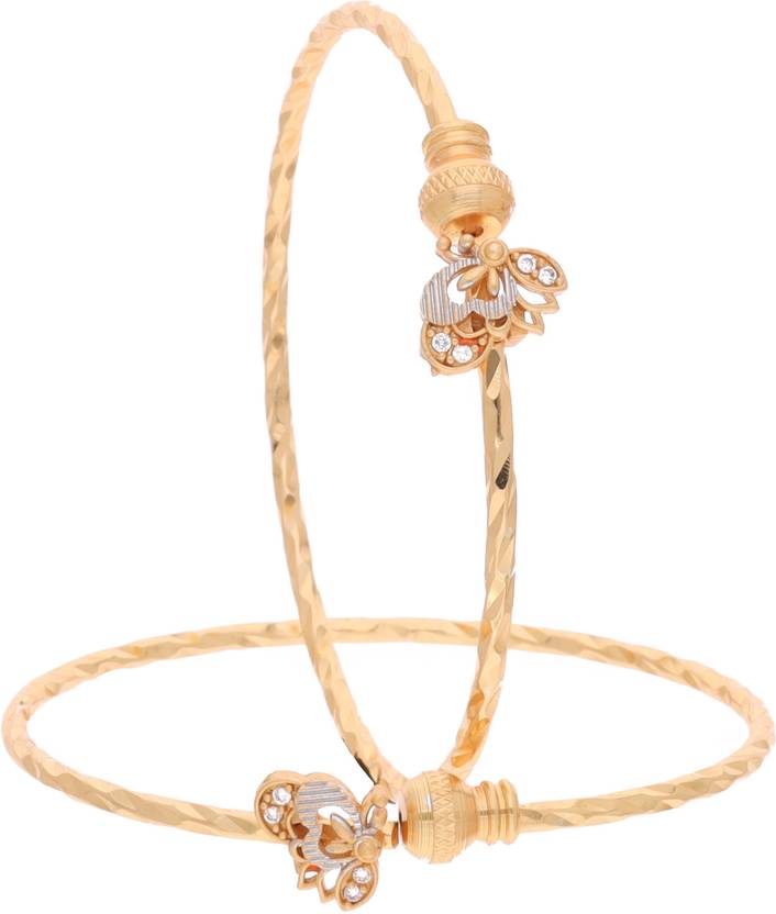 About - Polish: Gold, Color: Gold, Type: Bangles, Diamond: American Diamond, Enhance your jewellery collection with these beautifully crafted gold-plated bangles, designed to bring a touch of elegance and sparkle to every occasion. Featuring a unique each bangle is embellished with high-quality zircon stones arranged in neat rows, giving it a luxurious and radiant finish. The smooth gold plating ensures a premium shine, while the sleek structure offers a modern, classy look suitable for both traditional and Western outfits. These bangles are lightweight, comfortable to wear for long hours, and ideal for daily wear, casual outings, festive celebrations, or gifting your loved ones.