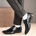 These men's formal lace-up shoes feature a sleek, glossy finish, giving them a sophisticated and polished appearance. Designed with a classic cap-toe and a pointed silhouette, they are perfect for adding a touch of elegance to any formal ensemble. The durable sole provides comfort and stability, making them suitable for long hours.