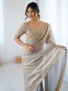 Sarees include various types of sarees like Kanchipuram, Banarasi, Paithani, Patola, Chanderi, and Baluchari and many more in silk; Tant, Jamdani, Sambalpuri, Kota Doria, Khadi, and Chettinad and many more in cotton; designer sarees featuring embroidery, sequins, stonework, mirror work, and zari and many more; regional sarees like Bandhani, Pochampally, Kasavu, Ilkal,Nauvari, and Uppada and many more; contemporary styles such as half-and-half, ruffle, pre-stitched,one minute saree,ready to wear saree,lehenga saree, and fusion sarees and many more; printed sarees with floral, geometric, block print, abstract, Kalamkari, and digital prints and many more; fabrics including georgette, chiffon, crepe, satin, organza, linen, and tissue and many more; saree patterns like stripes, checks, polka dots, paisley, ombre, ikat, Madhubani, hand-painted, and tie-dye and many more; and sarees for various occasions including bridal, festive, casual, party wear, and office wear and many more .
