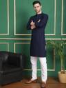 Men Embellished Viscose Rayon Straight Kurta (Blue)