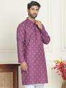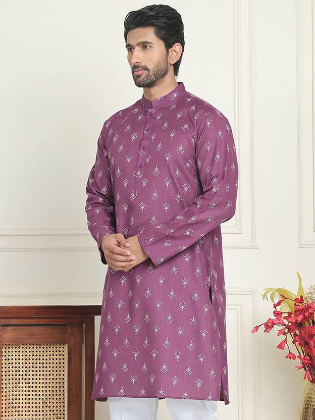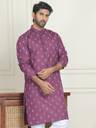 Men Printed Pure Cotton Straight Kurta (Purple)