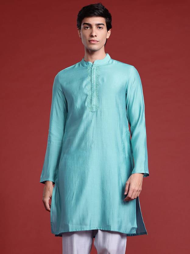 Men Solid Viscose Rayon Straight Kurta (Blue)