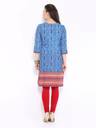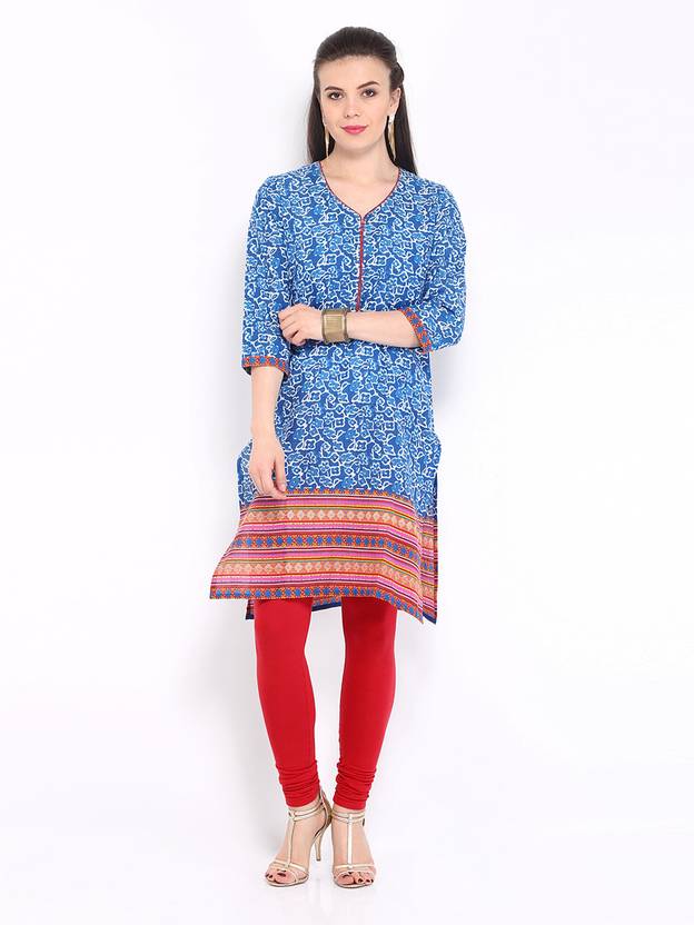 ANOUK Women Printed Cotton Blend Straight Kurta (Blue)