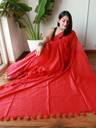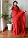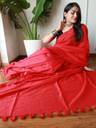 Solid/Plain Saree with Attached Blouse Pure Cotton Saree (Red)