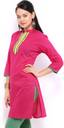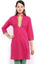 Pink woven kurta, has a mandarin collar with a split V-neck, three-quarter sleeves with contrast taping along the hems, vented hem. This kurta from Anouk exudes elegance and class. We suggest that you team it with tonal leggings and ethnic flats to complete the look.
