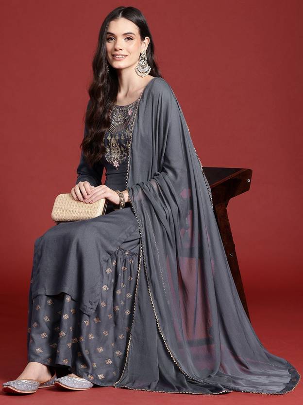 ANOUK Women Embroidered A-line Kurta (Grey)