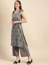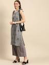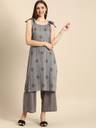 Grey striped Kurta with Palazzos Kurta design: Floral printed Striped Straight shape Regular style Shoulder straps, sleeveless Calf length length with straight hem Pure cotton machine weave fabric Palazzos design: Solid Palazzos Partially elasticated waistband Slip-on closure