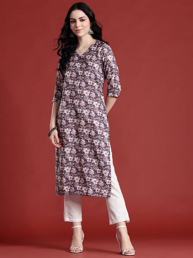 ANOUK Women Printed Straight Kurta (Purple)