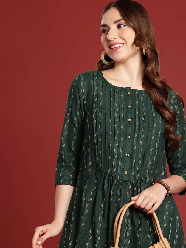 ANOUK Women Woven Design A-line Kurta (Green)