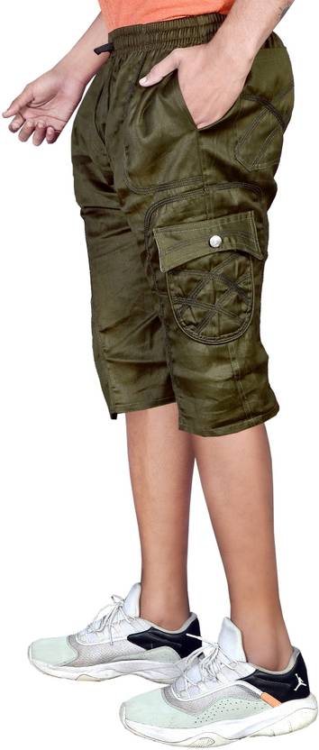 LEAF GREEN THREE QUARTER PANTS WITH FIVE POCKETS FOR MEN. CLASSIC DESIGN WITH COMFORTABLE PURE COTTON FABRIC. PLEASE CHECK SIZE MEAUREMENT FOR PERFECT FITTING