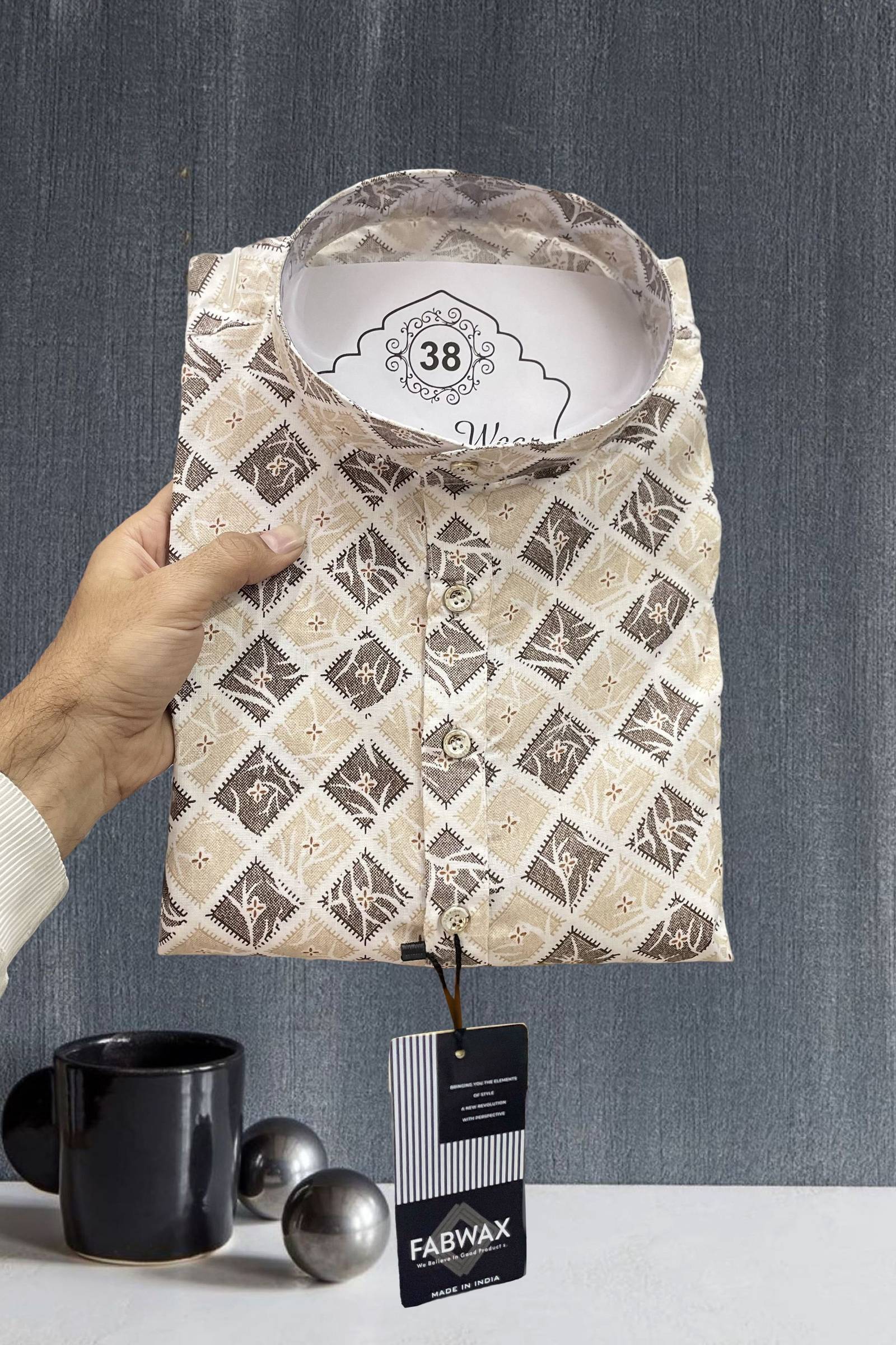 ANREX Men Printed Straight Kurta (Beige)
