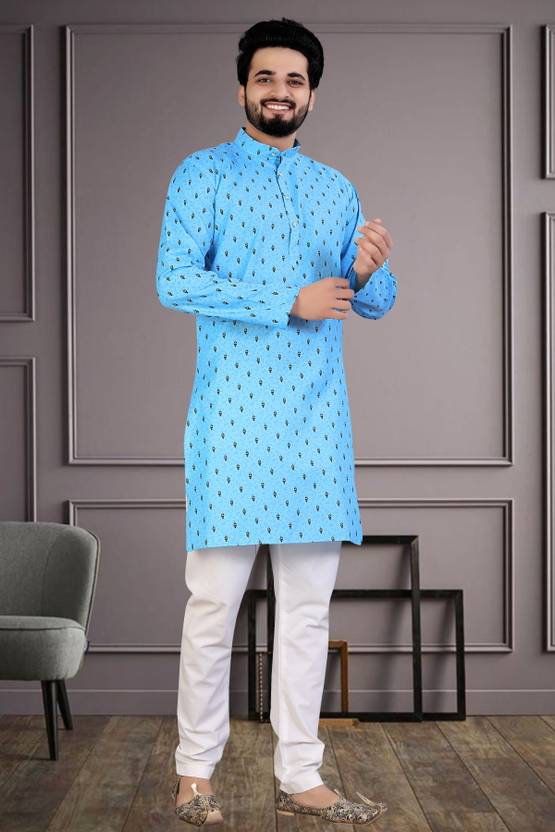 ANREX Men Printed Cotton Blend Straight Kurta  (Multicolor)