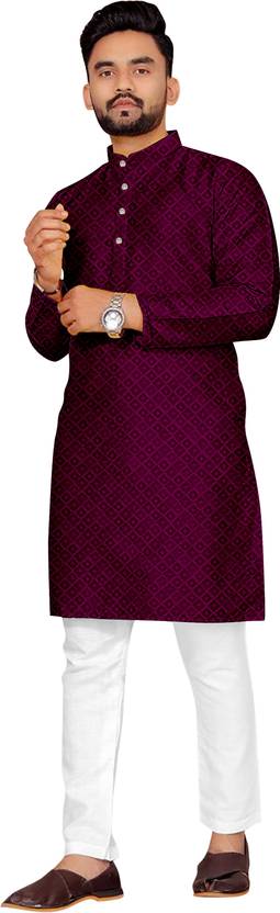 ANREX Men Self Design Jacquard Straight Kurta (Purple)