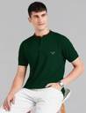 ANREX Men Solid Round Neck Cotton Blend Dark Green T-Shirt