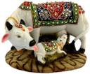 ANSH OUTLET Pooja Room Marble Decorative Kamdhenu Religious Showpiece I Cow & Calf Statue Decorative Showpiece - 13 cm (Marble, White)