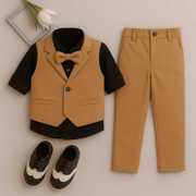 ANSHI COLLECTIONS Boys Party(Festive) Bodysuit Waistcoat (BLZR-Yellow-SET-)