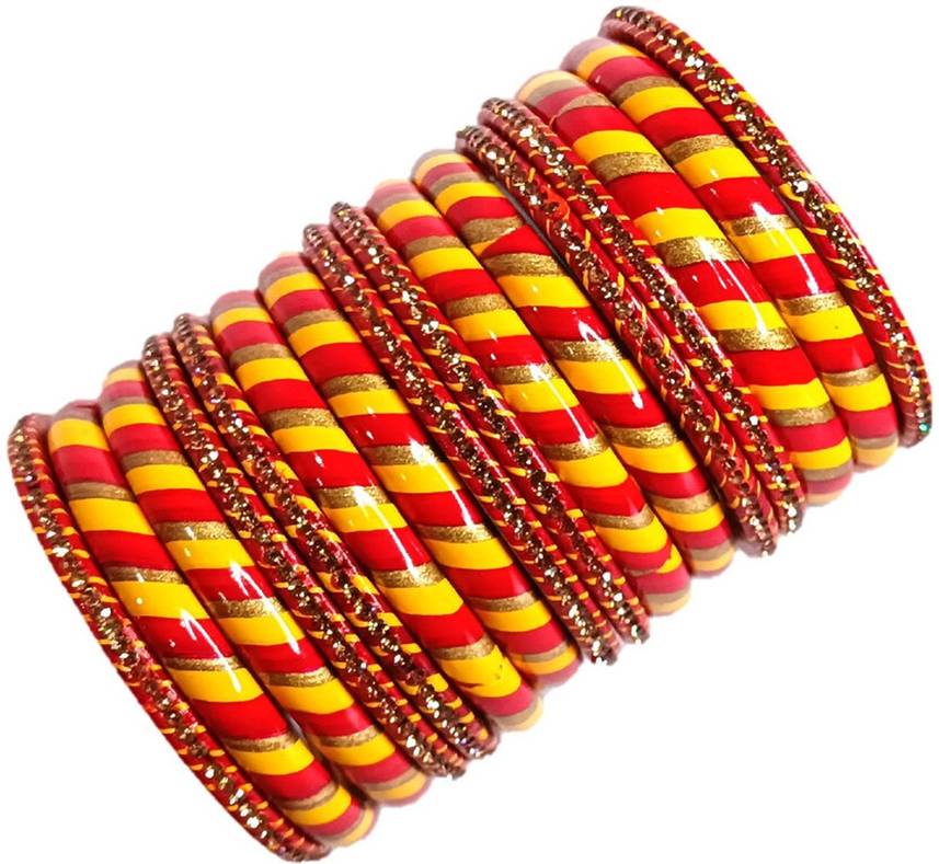 This Pack consists of 16 numbers of hand crafted pure water proof Lah bangle set. Each piece is handcrafted by our people who are professionally developed to make such quality Lah bangles. These bangles are very much famous in Muzaffarpur along with nearby areas where it is manufactured and are widely used in festivals, weddings. It's also a perfect product to give to our dear ones. By having these bangles it will make you feel proud with its traditional look.