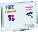 Value Range Light Weight Double Sided Magnetic Drywipe Whiteboard with a Pen Tray. ANSIO dual sided boards give twice the writing capacity. Made with durable & light weight aluminium frame. Easy to install using the supplied fixing kit. Inner layers are made with eco-friendly material. ANSIO light weight boards are great for Home & Office needs. Smooth surface with special E-Z-W Lacquer coating is great for writing and easy to clean. FREE 4 colour magnets only for limited period. Free fixing kit included
