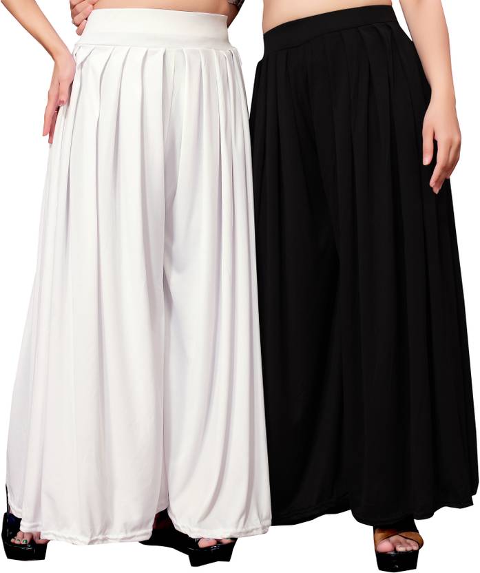 Anti Wrinkle Designer Flared Women White, Black Trousers