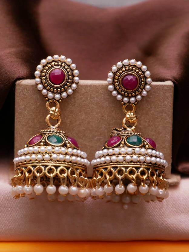 Antico Traditonal Ethnic Pearl Studded Gold Platted Big Oxxidize Jhumka Jhumki For Girl Alloy Jhumki Earring, Drops & Danglers, Chandbali Earring