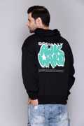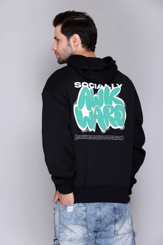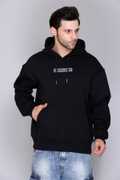 Premium Fleece, Printed, Oversized Hooded Black Sweatshirt