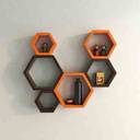 ANTIQUE MART Hexagonal Rack Shelf Wooden Wall Shelf (Number of Shelves - 6, Orange, Brown)
