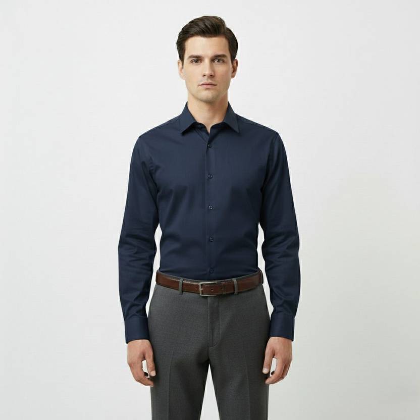 AntlersGuild Men Slim, Regular Fit Solid Spread Collar Formal Shirt