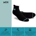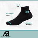 Content : 4 Pairs of Socks | Size: Free Size | Gender: Unisex | Length - Ankle | Color: Black | Material: Combed Cotton | Cotton Terry, Breathable Mesh: Open-knit design promotes airflow, keeping feet cool and dry during workouts or everyday wear., Cushioned Bottom: Plush padding underfoot provides added comfort and impact absorption for long-lasting wear., Tab for Better Hold: Extended pull tab facilitates easy wear and removal while ensuring a secure fit around the ankle., Reinforced Heel & Toe: Durable construction at high-stress points for extended sock longevity and enhanced comfort., Moisture Absorbent: Advanced fabric technology wicks away sweat, keeping feet dry and comfortable throughout the day., Extra Durable: Reinforced construction enhances longevity, making socks resilient against wear and tear., Smart Knitting: Precision-engineered seams ensure a smooth, irritation-free fit, enhancing overall comfort and durability.