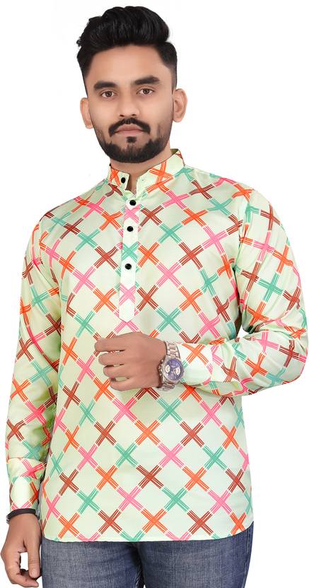 Regular checks Printed Kurta shirt For Mens