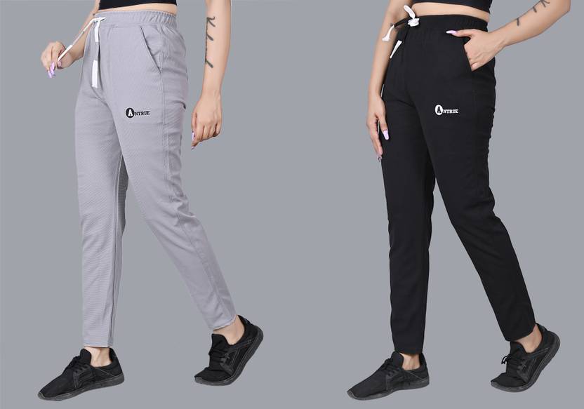 ANTRUE Solid Women Grey, Black Track Pants