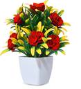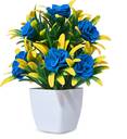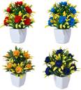 Anuash Set of 4 Rose Flower For Decoration Table Office table Bonsai Wild Artificial Plant with Pot (18 cm, Multicolor, Blue, Red, Yellow, Pink)