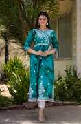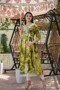 anushansa Women Chikan Embroidery Flared Kurta (Light Green)