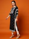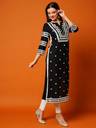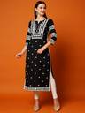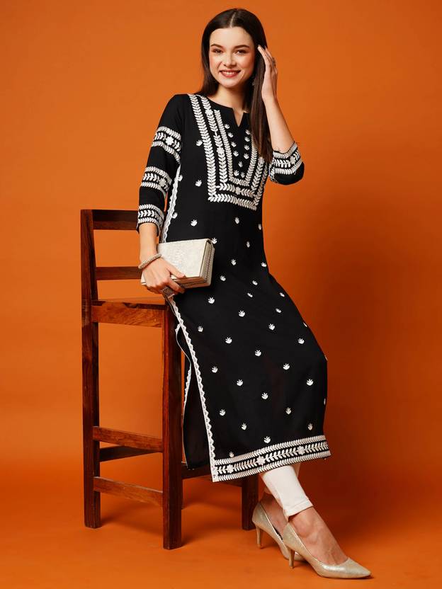 anushansa Women Embroidered, Self Design Straight Kurta (Black, White)