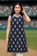 anushansa Women Printed Straight Kurta (Light Blue)