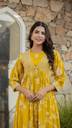 ANUSHEET Yellow Muslin 2-Piece Long Dress with Floral Print Stylish Ethnic Wear