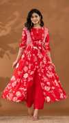 With this really beautiful Long Dress with Floral Print in Yellow Muslin 2-Piece, elevate ethnic wear with comfort and style. This outfit is made of premium quality muslin fabric only, lightweight, breathable and soft against skin, for comfortable wear all day long. Cheerful and festival like, this bright yellow shade in conjunction with floral print makes it a good match for all occasions. The long kurta in this set has been designed as a beautiful flowing silhouette with intricate detailing, finished off perfectly with matching pants to give a full and polished outfit. The kurta with a hint of A-Line cut and three quarter sleeves not just beautifies your overall appearance but also brings in a fresh feel with its beautiful floral motifs. This muslin dress set creates the perfect blend of style and practicality for all events, whether it is dressing up for celebrations, going out casually, or attending a formal event. Accentuate it all with your favourite accessories and footwear for a trendy yet flexible outfit that will catch everyone's eye wherever you go.