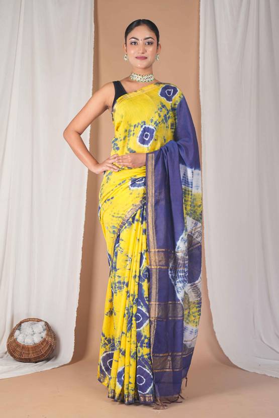 Tie-Dye Saree with Attached Blouse Silk Blend Saree (Multicolor)