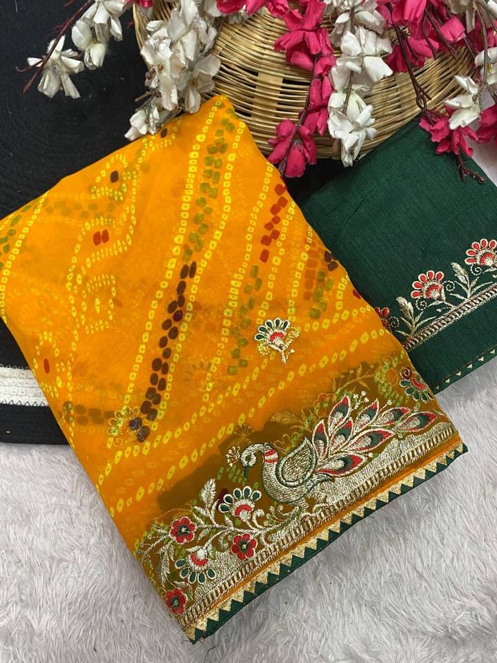 Unstitched This Product is Saree that shown in image.total saree length is 6.30 metre in which saree is 5.5 metre and blouse is 0.80 metre .please cut blouse from last.The saree is an outfit which women can carry off with great panache. With the right material and drape, it can accentuate the beauty of women of all ages and forms. Be it a festival or a wedding, sarees are a hot favourite worldwide, and it’s easy to see why. Sarees give you the opportunity to give a modern touch to a traditional Indian attire.