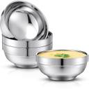 ANUVYA Stainless Steel Serving Bowl Double Walled Insulated Soup Ice Cream Metal Mixing Nesting Bowls (Pack of 1, Silver)