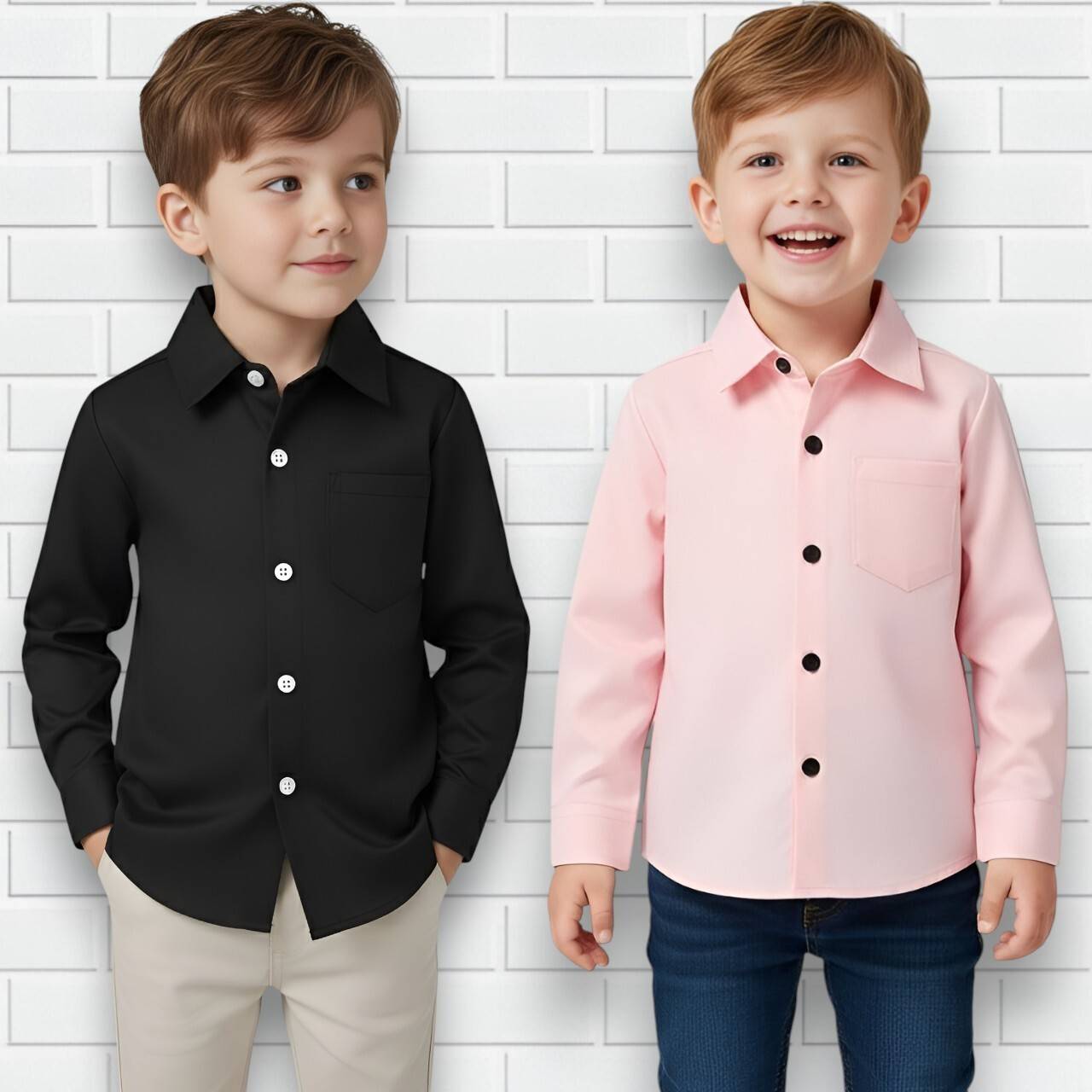 Discover delightful flair with this charming pack of two boys' long sleeve and short-sleeve button-down shirts. The first shirt showcases a stunning tropical print featuring navy monstera leaves, soft pink florals, and gentle peach accents on a crisp white background. The second shirt presents a refreshing blue and white checkered pattern that's both timeless and versatile. Crafted from a comfortable cotton blend fabric, both shirts feature traditional point collars, convenient front button closures, and quality stitching throughout. The checkered variant includes a practical chest pocket for added functionality. These regular-fit shirts are perfect for various occasions, from casual outings to holiday celebrations. The lightweight material make certain all-day comfortable, whether at school or family gatherings. Easily paired with shorts, trousers, or jeans, these shirts offer multiple styling options. The shirts feature straight hemlines and neat construction, making them ideal for growing boys. Machine washable in cold water with tumble dry low setting for easy. Available in various sizes to make sure the perfect fit for your little one.